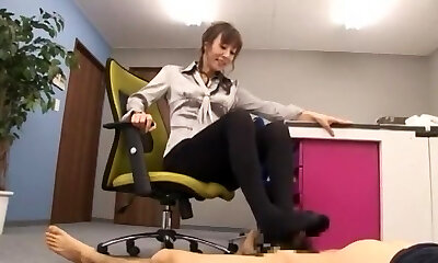 Japanese ballbusting and feet wank