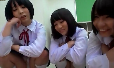 Insatiable asian teens pissing in a box